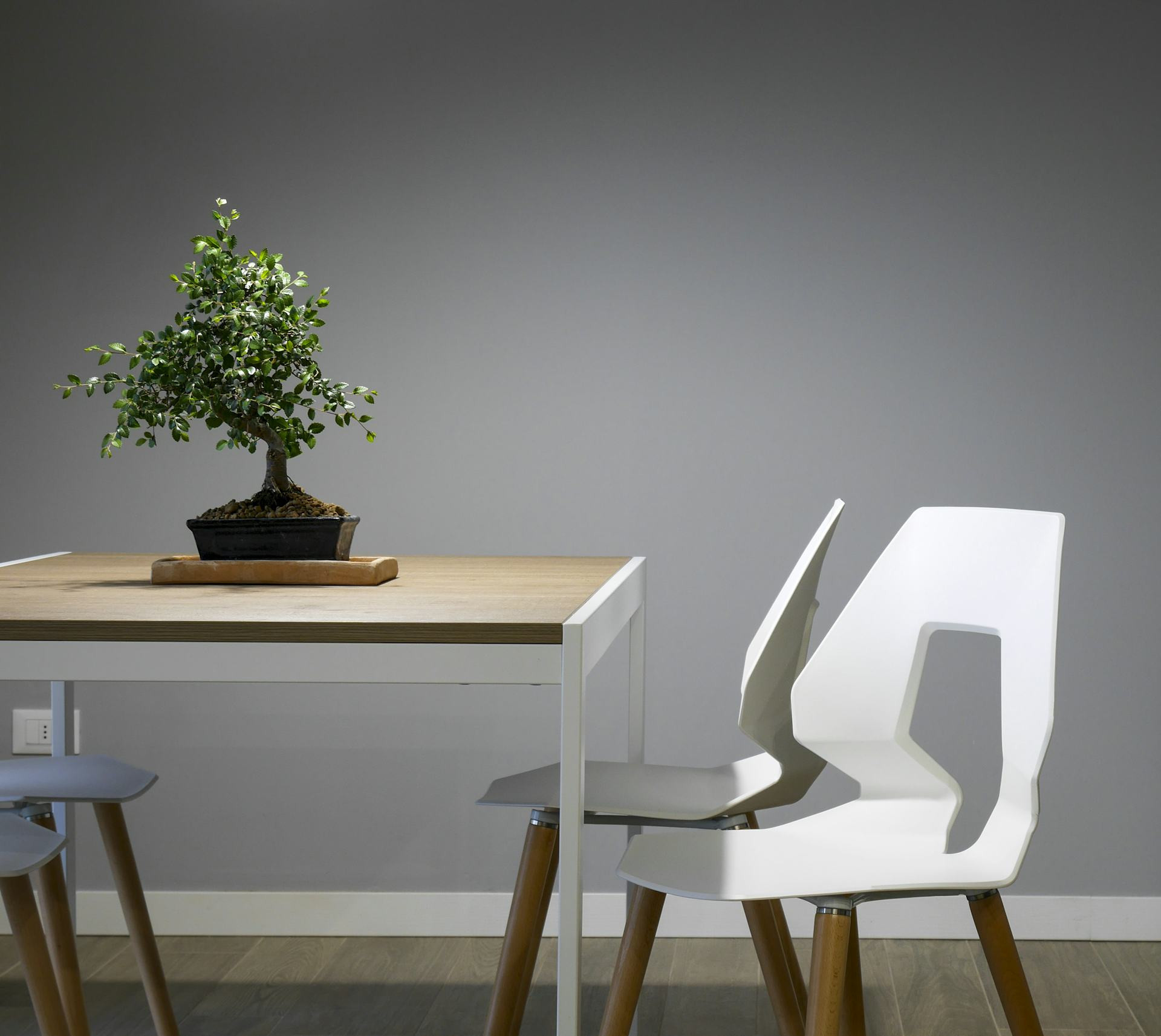 Et andet trick er at bruge væggen aktivt: monter hylder over bordet til opbevaring af mapper, bøger eller planter. Det frigør gulvplads og giver samtidig et personligt præg.